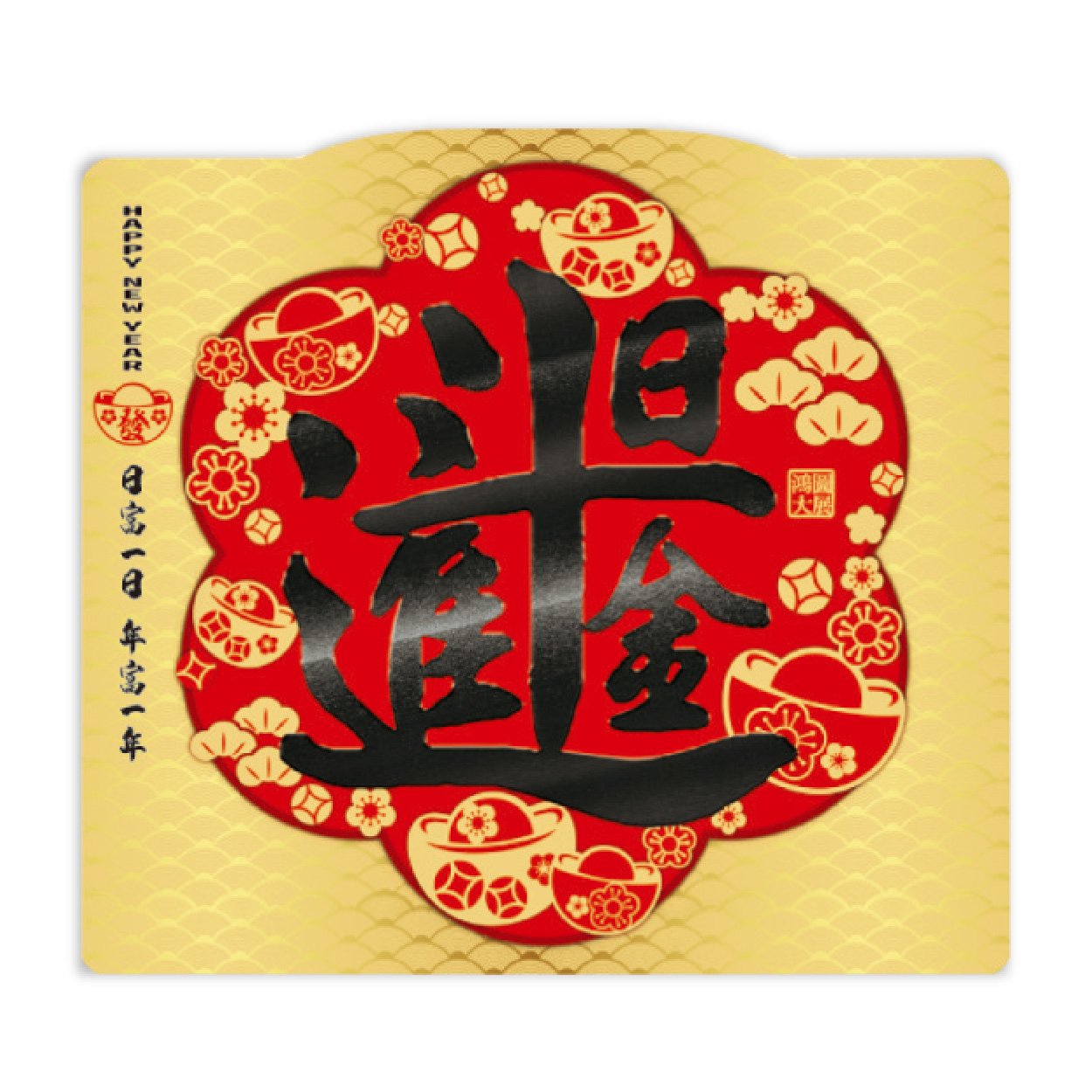 6開單面凸板燙金月曆,日進斗金